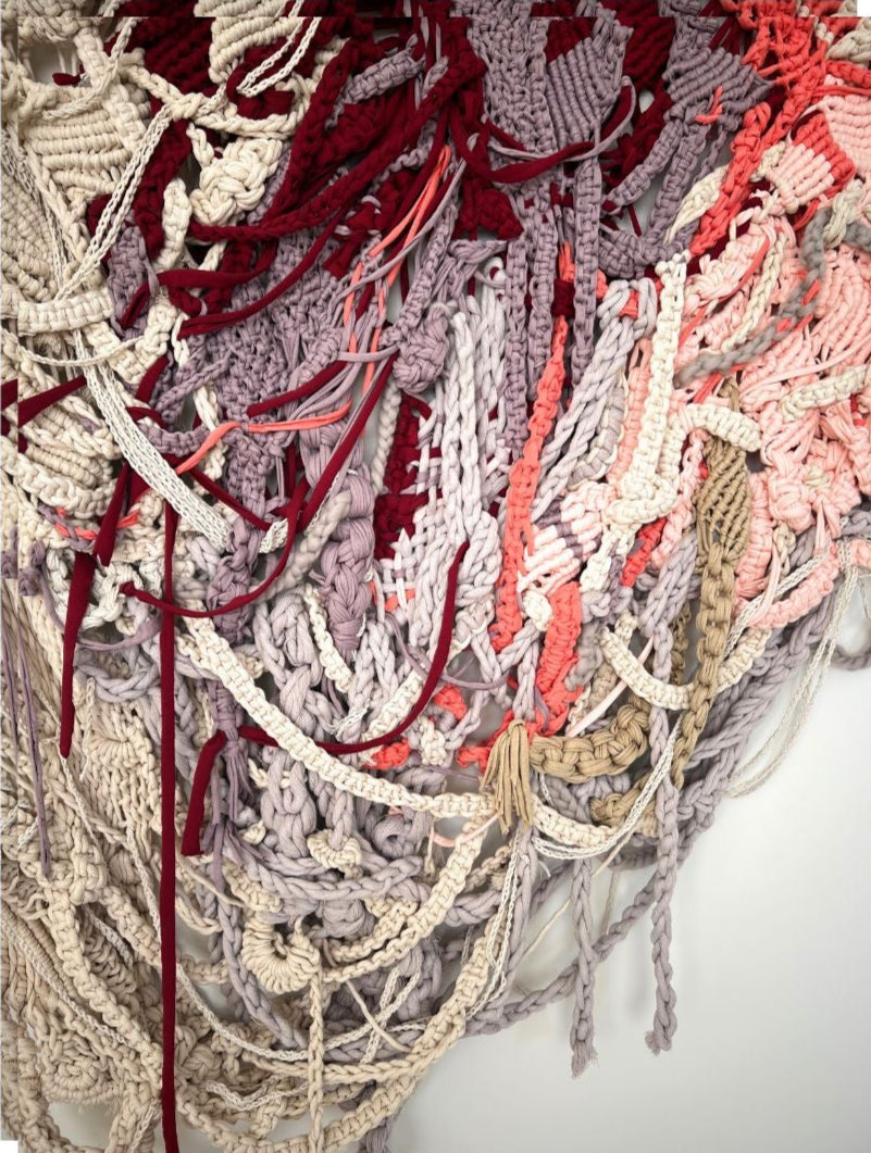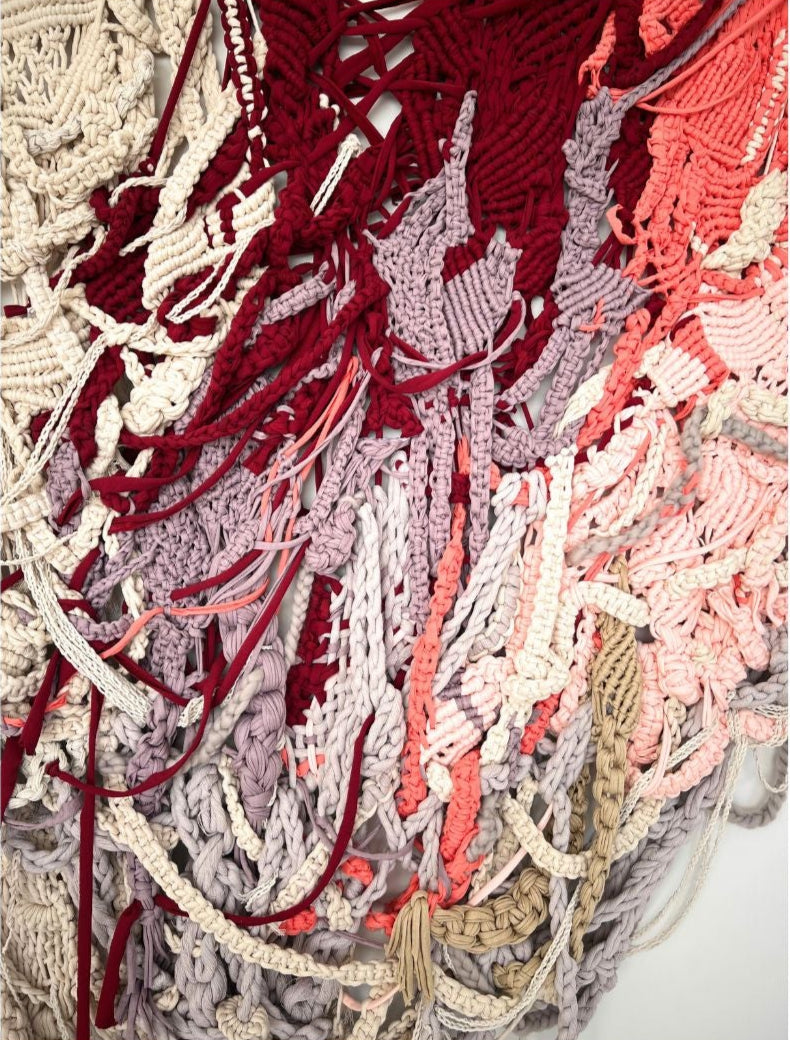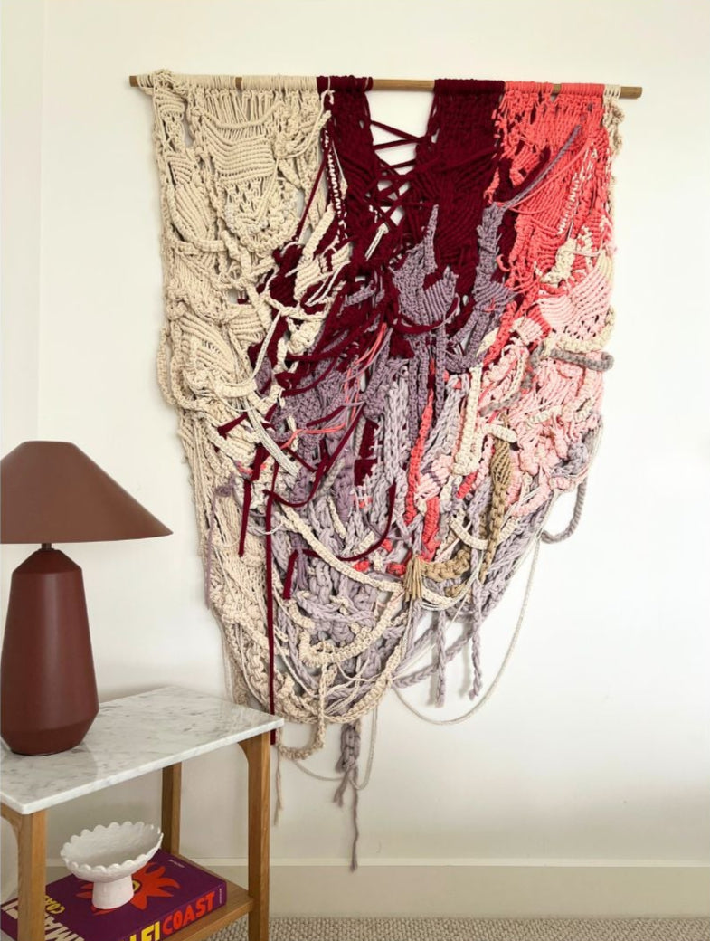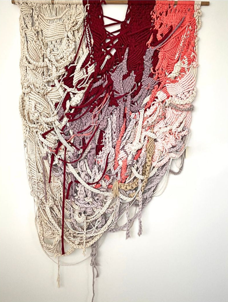 The combination of bends of intricate macrame', weaving and freeform techniques creates an organic, flowing design that brings depth, dimension and warmth into any space.